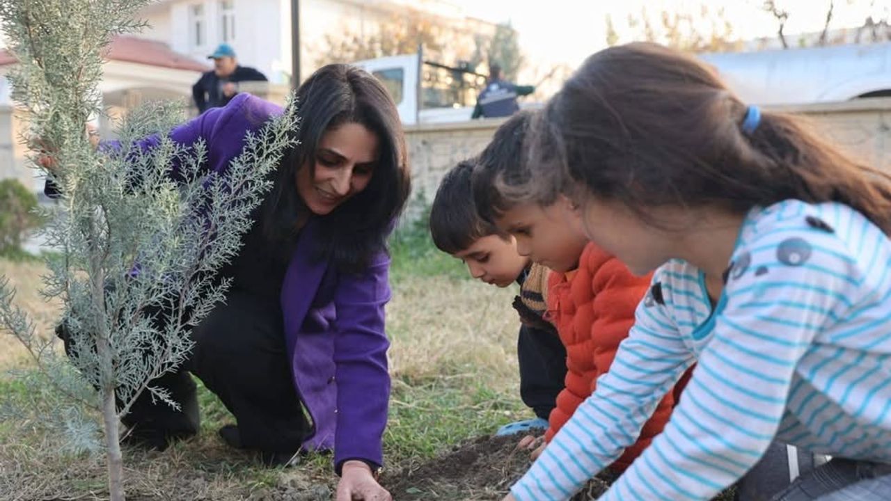 Eş Başkan Kum, kadınların yaşamı yeniden yeşerten bir güç olduğuna vurgu yaparak, dikilen her fidanın hem doğanın hem de kadının yeniden doğuşunu simgelediğini ifade etti.