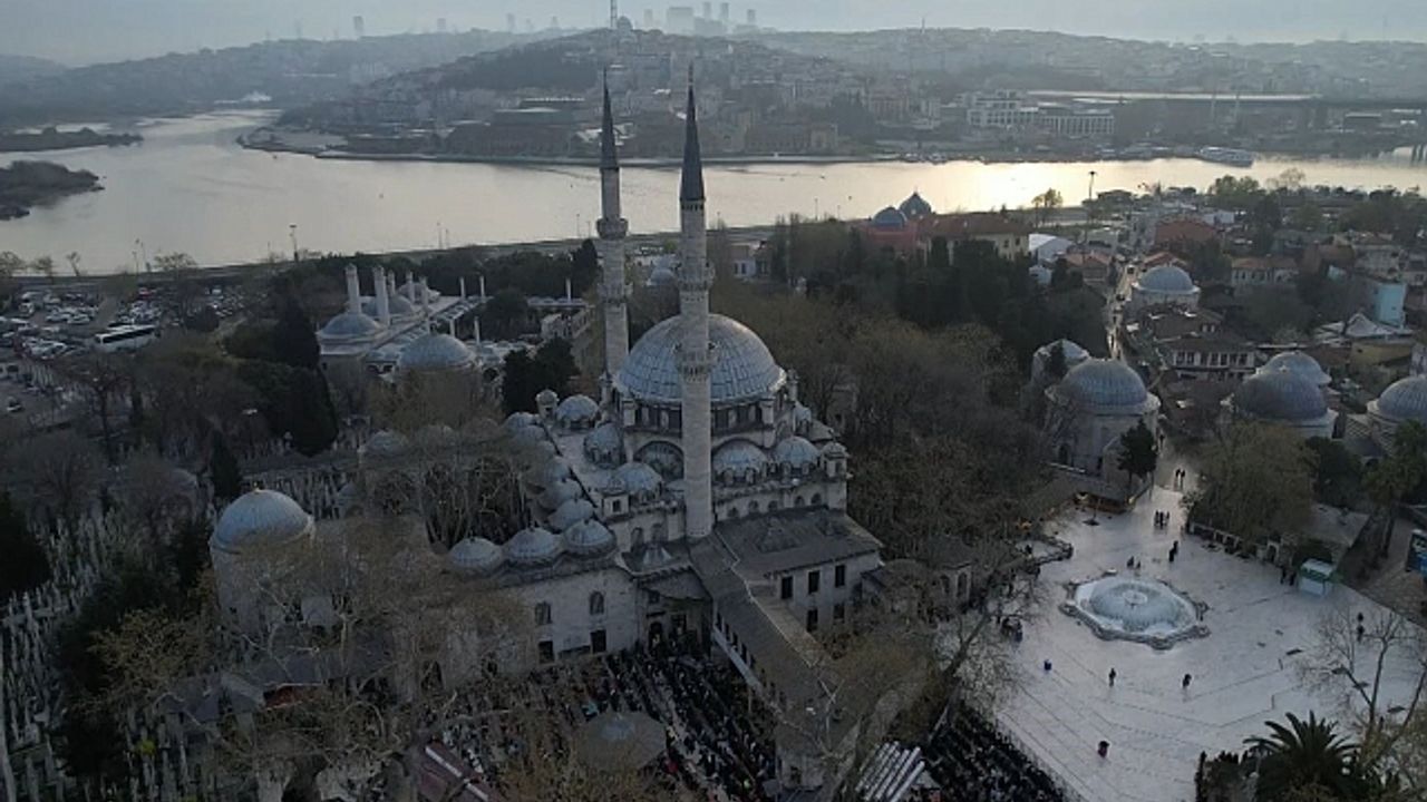 Eyüpsultan Camii, Ramazan Bayram namazını kılmak isteyen vatandaşların akınına uğradı. Camiye sığamayan vatandaşlar, namazlarını avluda kıldı. Namaz vaktinden saatler önce Eyüpsultan Camii''nin içerisinde namaz kılmak için gelen vatandaşların oluşturduğu yoğunluk havadan görüntülendi.