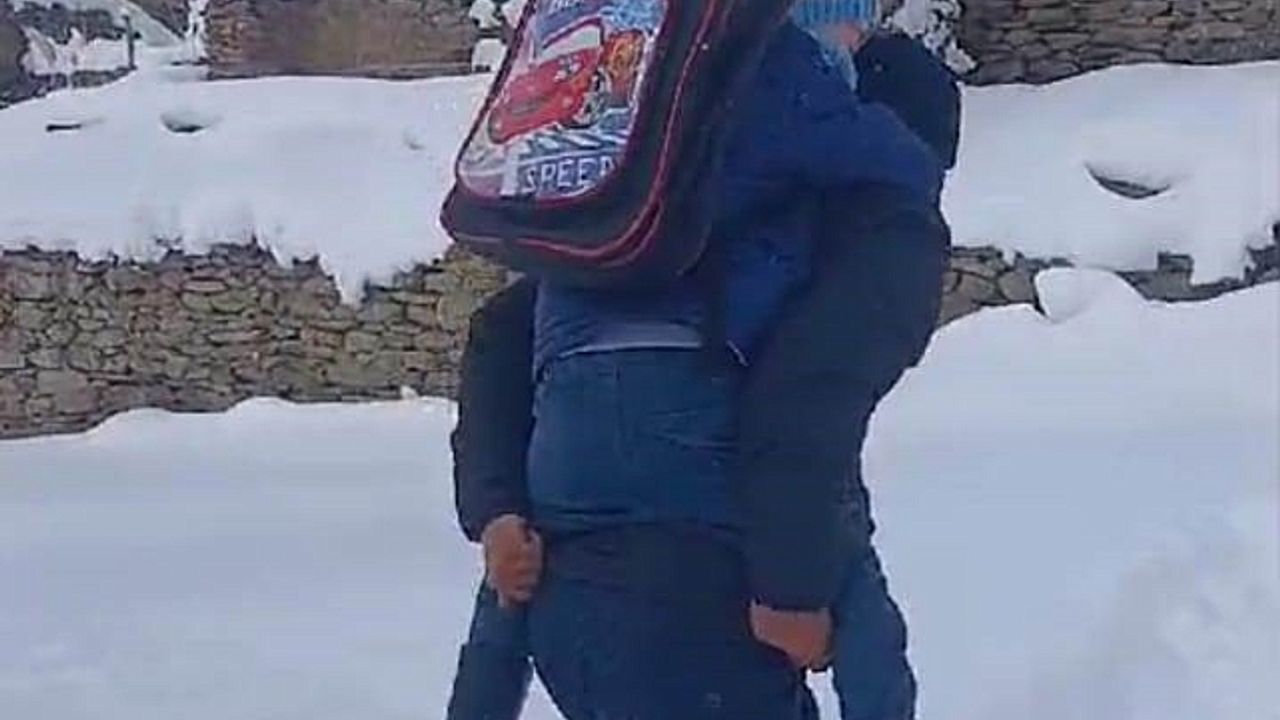 Van''ın Gevaş ilçesinde Cihan Yakut isimli öğretmen, karda yürüyemeyen öğrencisini evine kadar sırtında taşıdı.