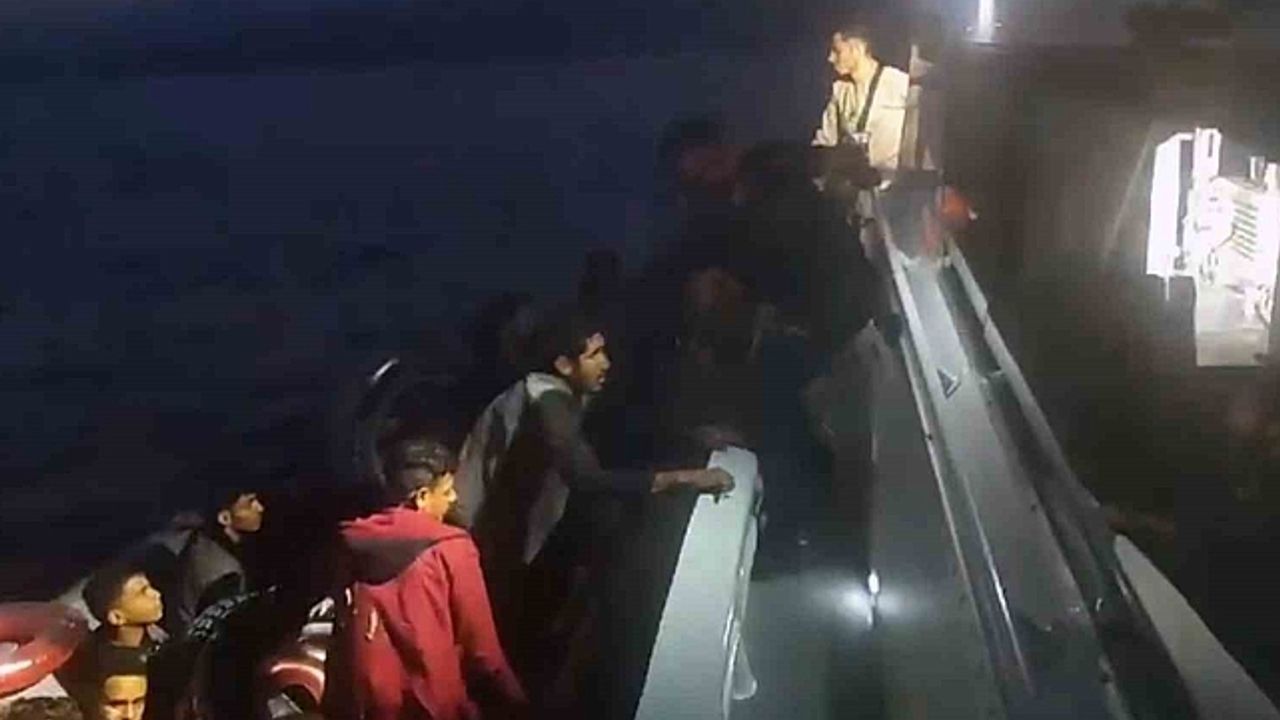 Muğla''nın Fethiye ilçesi açıklarında Sahil Güvenlik ekipleri tarafından durdurulan lastik bot içinde 17 düzensiz göçmen yakalandı.
