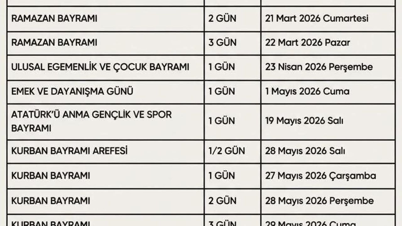 2026 yılında, birkaç günlük izinle seyahat planlarını uzatmak veya dinlenmeye daha fazla zaman ayırmak isteyenler için takvimde belirlenen kritik tarihler öne çıkıyor. İşte 2026 yılının en uzun tatil fırsatları: