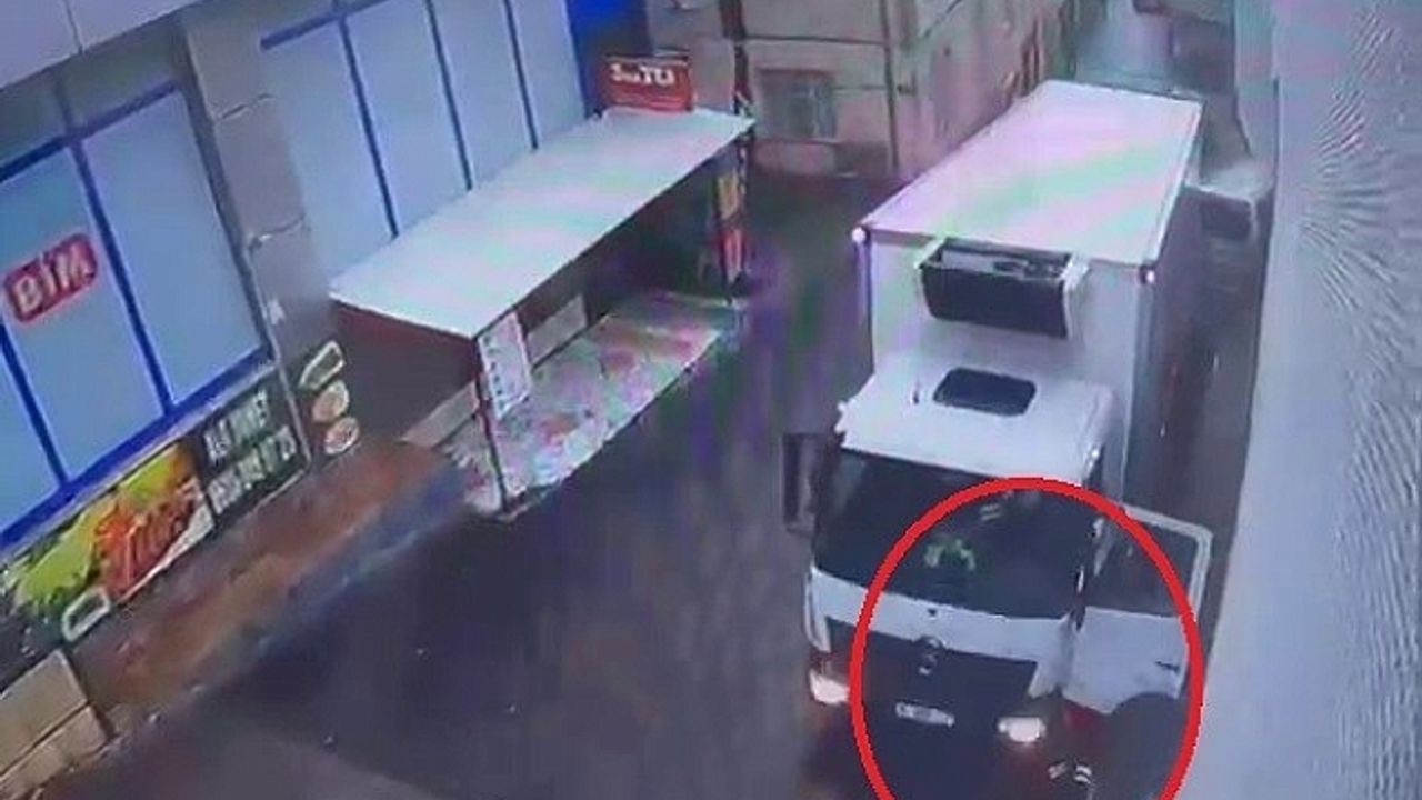 Bursa''da freni boşalan kamyon yokuş aşağı kayarken aracı durdurmak isteyen sürücü kapıda asılı kaldı. O anlar kameraya yansırken, sürücü canını zor kurtardı.