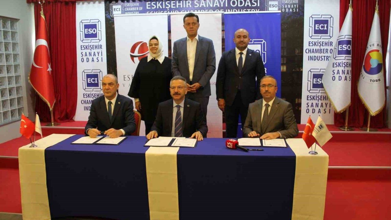 Eskişehir"de Odunpazarı İlçe Milli Eğitim Müdürlüğü ve Eskişehir Sanayi Odası (ESO) arasında Geleceğin Ustaları OMEM"de Projesi protokolüne imza atıldı.
