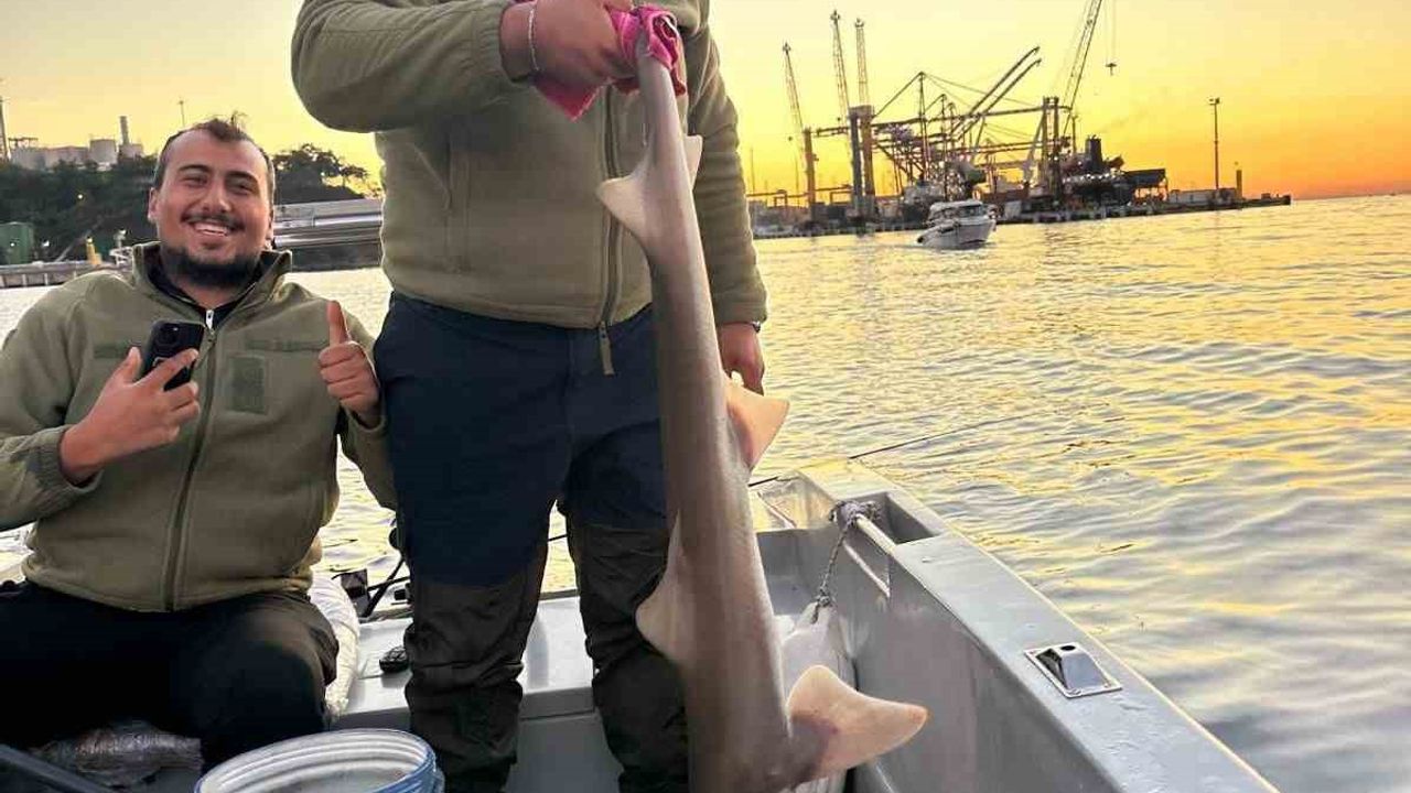 Gemlik Körfezi’nde denize açılan balıkçılar, oltalarına takılan canlının köpek balığı olduğunu fark etti. Kısa süreli şaşkınlık yaşayan balıkçılar, dikkatli bir şekilde köpek balığını tekneye almayı başardı.