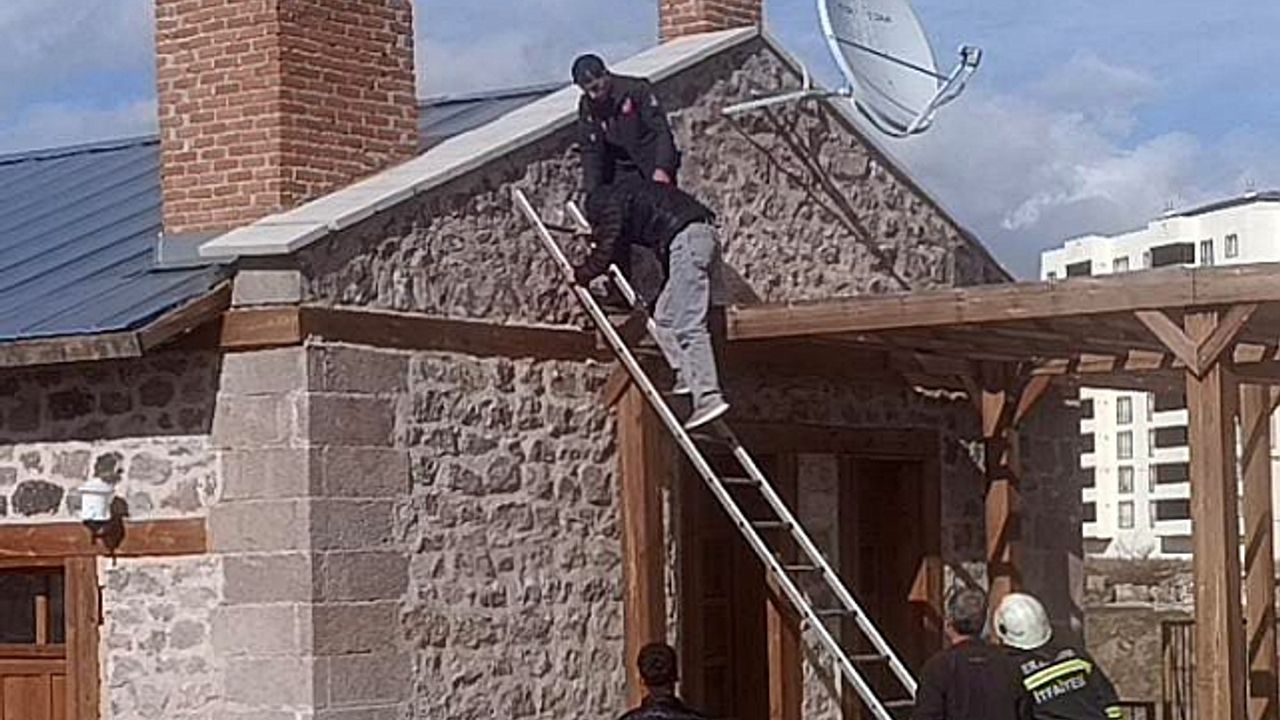 Erzurum''da bir gencin çatıya çıkma iddiası sonrası gelişen olaylar görenleri şaşırttı.