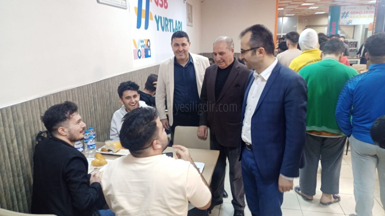 Iğdır Gençlik ve Spor İl Müdürü Recai Şahin, KYK Yurt Hizmetleri Müdürü Erol Bayat ile birlikte öğrenciler ile sıraya girerek yemek alarak iftar açtı.