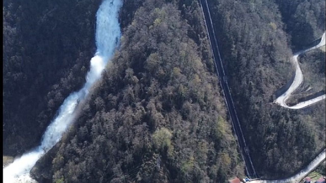 Giresun''un Doğankent ilçesinde Harşıt Vadisi ve Uluslararası İran Karayolu üzerinde bulunan Hidro Elektrik Santralinin (HES) fazla suyunun tahliyesiyle oluşan yapay şelale, görenleri kendine hayran bırakıyor.