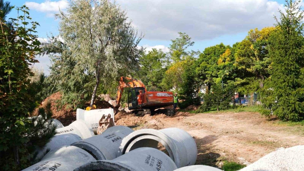 Gölbaşı Belediyesi, yağmur yağdığında göle dönen Alparslan Türkeş Parkı bölgesinde alt yapı çalışması başlattı.