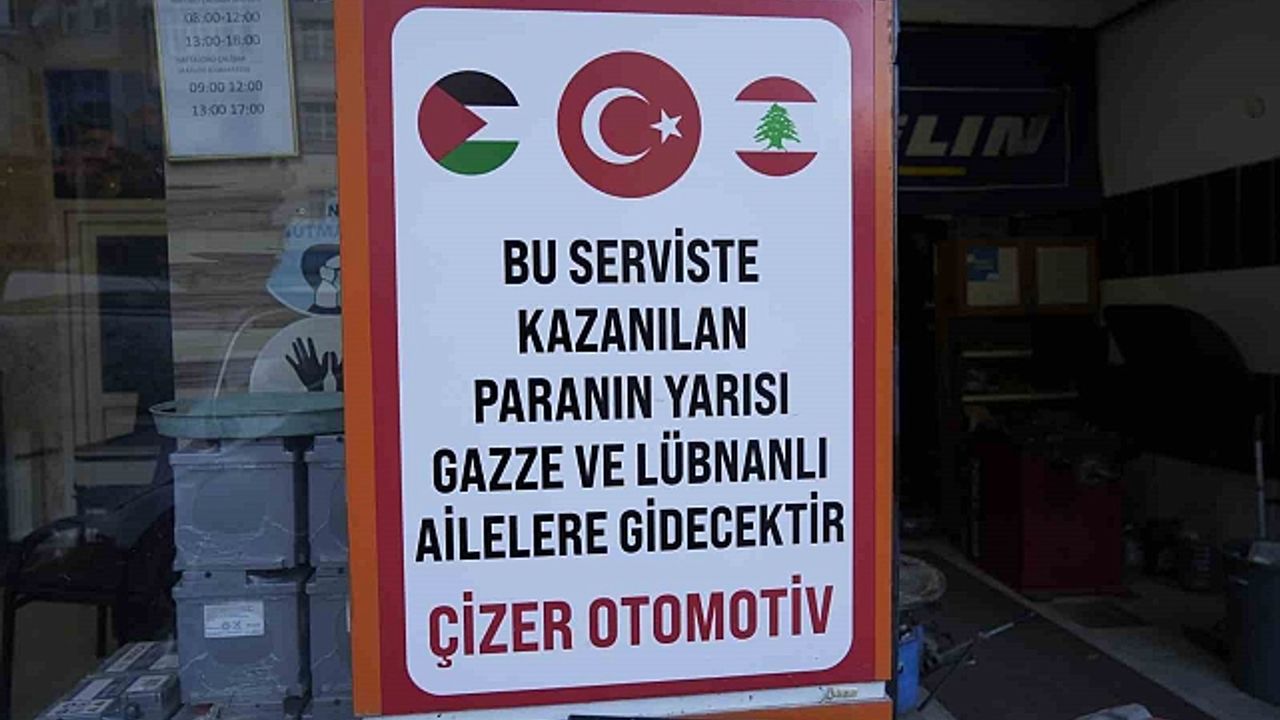 Gümüşhane''de otomobil servisi işletmecisi Hayati Akbağ işletme gelirinin yarısını devamlı olarak Gazze ve Lübnan''da bulunan ailelere gönderiyor.