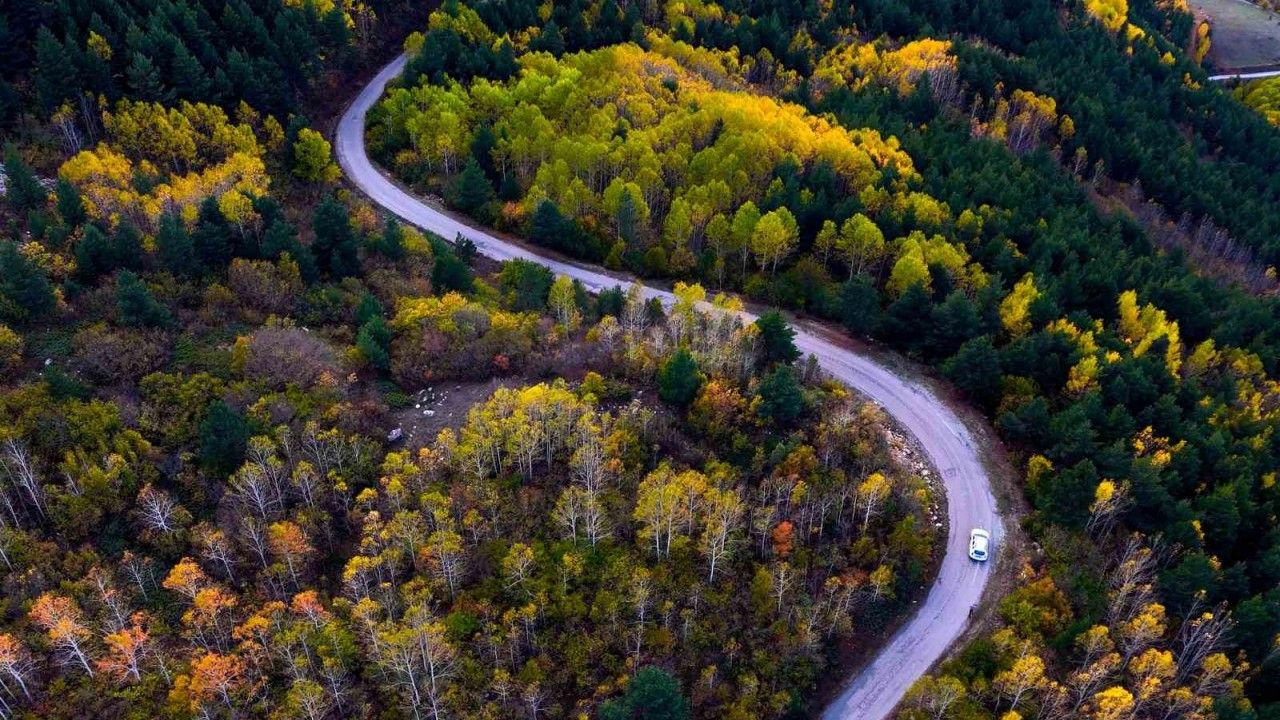 Yol boyunca uzanan titrek kavak ağaçlarının altın sarısı yaprakları, her dem yeşil kalan sarı çam ormanları ve yer yer kendini gösteren meşe ağaçlarının kahverengi tonları, doğanın ne denli zengin bir palete sahip olduğunu gözler önüne seriyor.