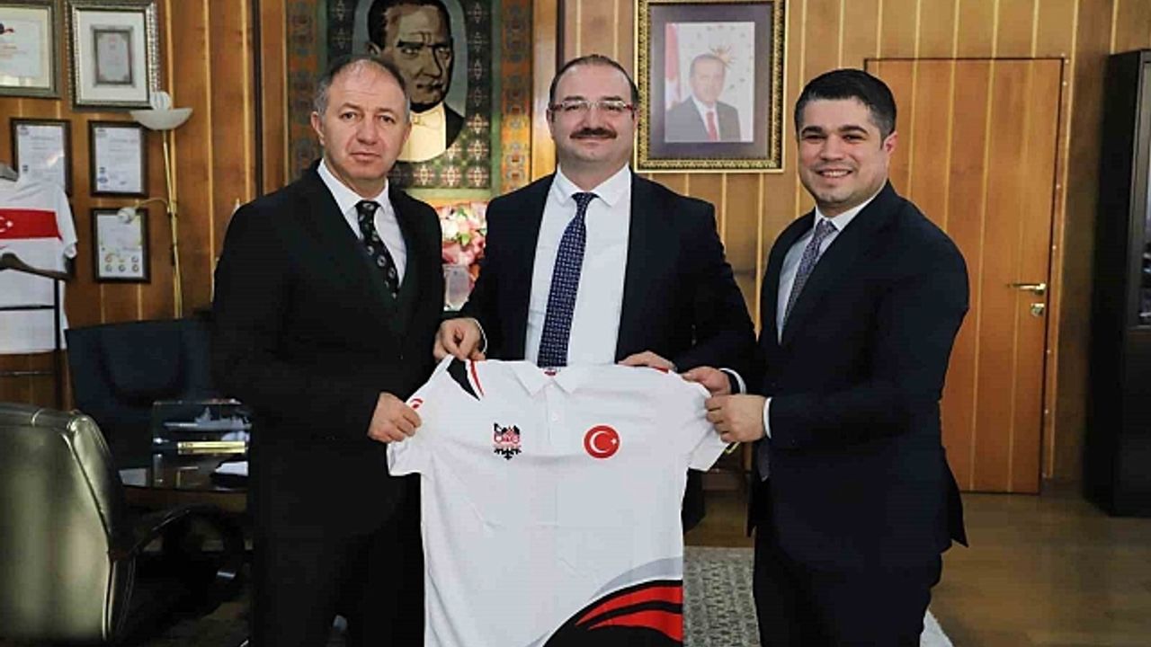 Erzurum Gençlik ve Spor İl Müdürü Levent Çakmur ile Spor Hizmetleri Müdürü Erdoğan Dönmez, Atatürk Üniversitesi Rektörü Prof. Dr. Ahmet Hacımüftüoğlu''nu ziyaret ederek destekleri için teşekkür etti.