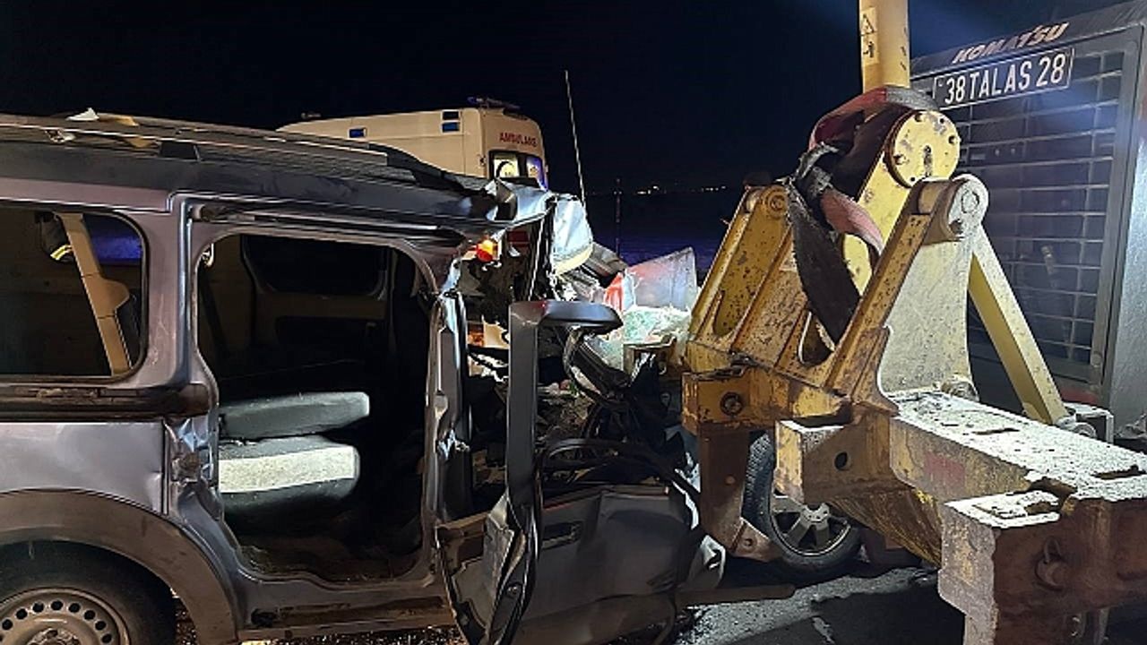 Kayseri-Malatya yolunda hafif ticari aracın iş makinesine çarptığı kazada 1''i ağır 2 kişi yaralandı.