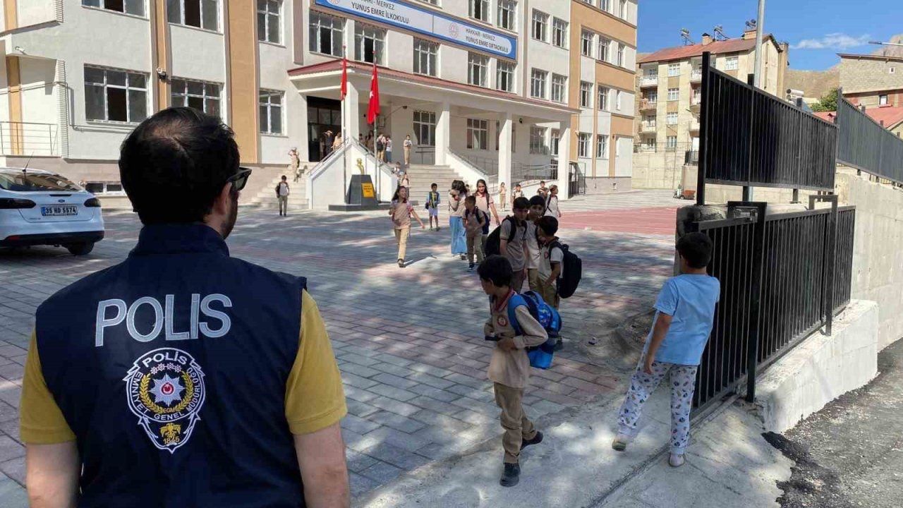 Hakkari Emniyet Müdürlüğü, eğitim öğretim yılının başlamasıyla birlikte okul çevreleri, parklar, bahçeler, umuma açık alanlar ve servis araçlarına yönelik denetimlerini sürdürüyor.