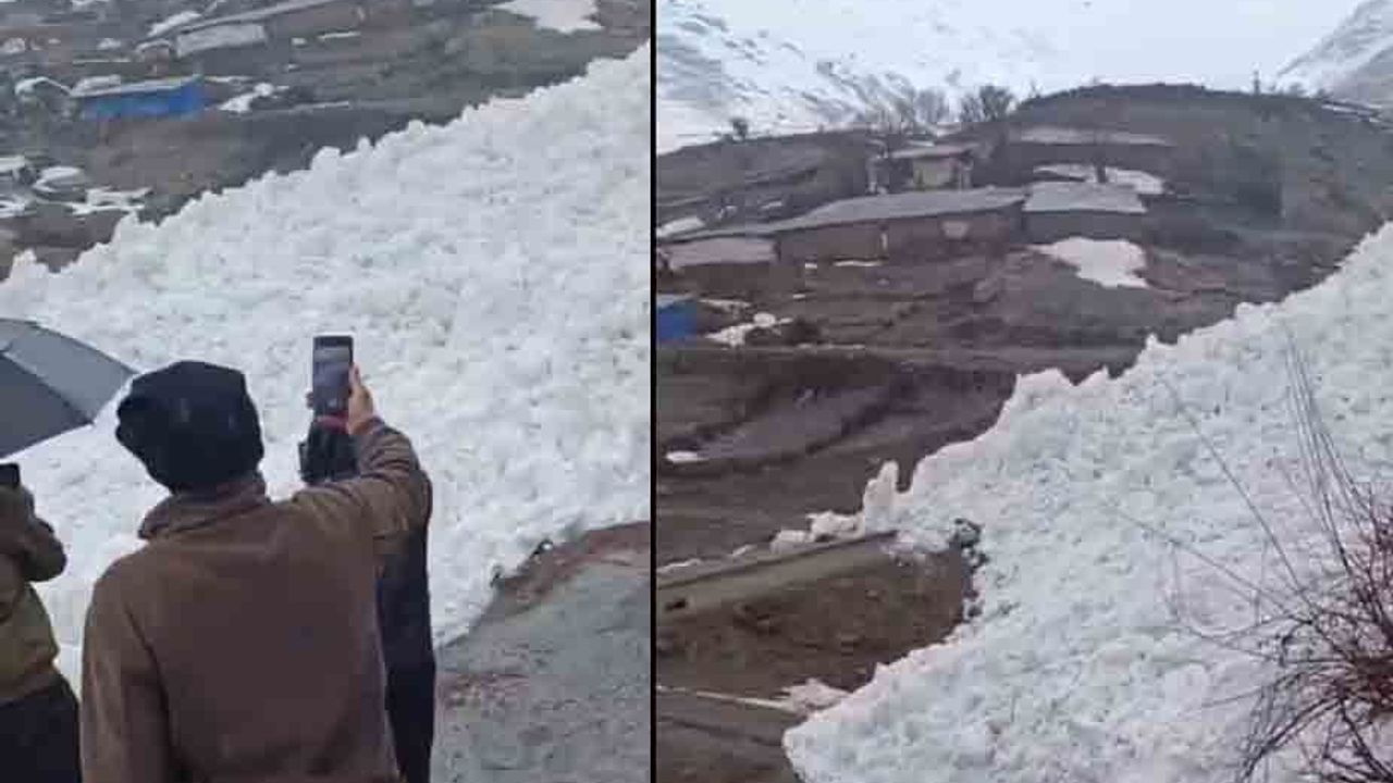 Hakkari'nin Çukurca ilçesinde Akkaya köyünü adeta teğet geçen çığ büyük korkuya neden oldu.