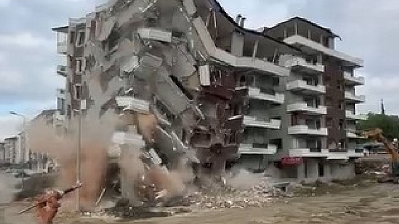 Kahramanmaraş merkezli depremlerde ağır hasar alan Hatay''da mahkeme süreci sona eren binaların yıkım ve enkaz kaldırma çalışmaları aralıksız sürüyor. Defne ilçesi Çekmece Mahallesi''nde bulunan 7 katlı bina, iş makinesi ile kontrollü olarak yıkıldı. Binanın yıkılma anı ise kameralara anbean yansıdı. 7 katlı binanın yıkımı esnasında herhangi bir olumsuzluk yaşanmadı.