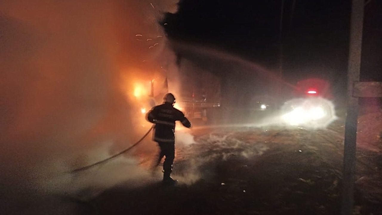 Edinilen bilgiye göre, Kumlu ilçesinde park halindeki tır motor kısmından yanmaya başladı. Kısa sürede tır alevler içinde kaldı. Çevredekiler durumu 112 Acil Çağrı Merkezi''ne bildirildi. Olay yerine gelen itfaiye ekipleri yangına müdahale ederek söndürdü. Yangın sonucu tır kullanılmaz hale geldi.