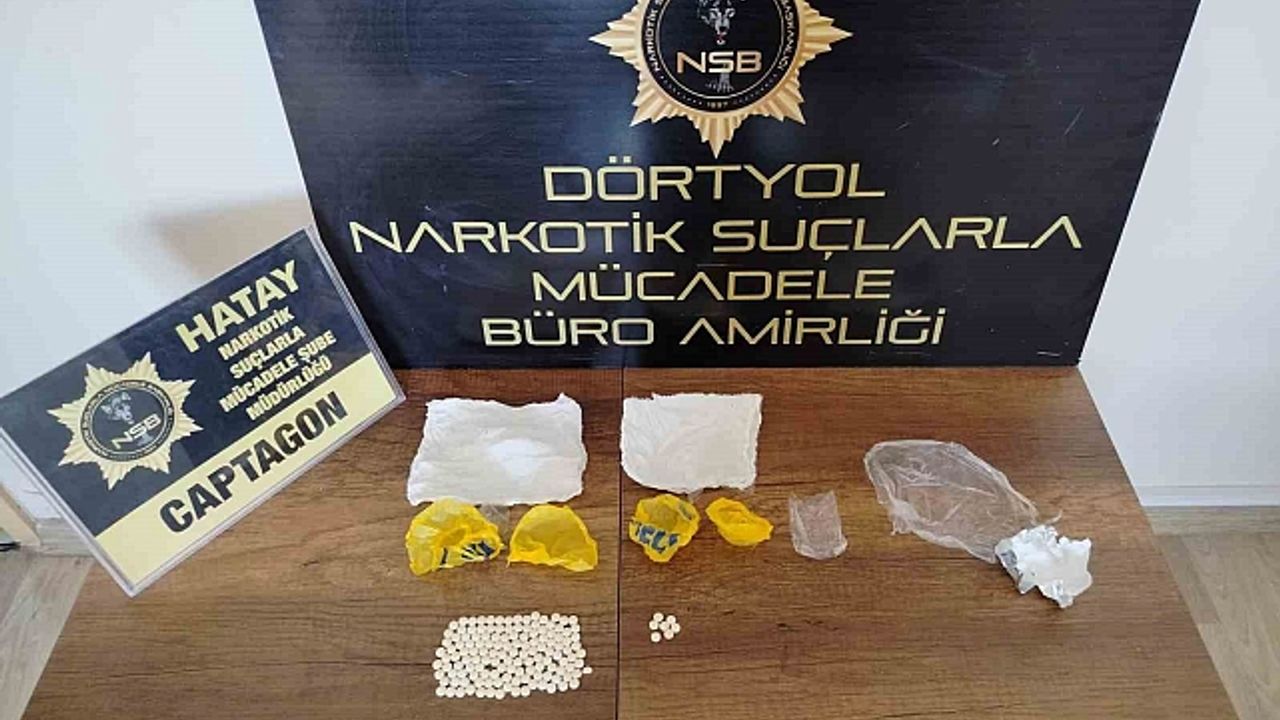 Hatay Emniyet Müdürlüğü görevlilerince uyuşturucu imal ve ticaretini engellemek için çalışmalarını aralıksız sürdürülüyor. Yapılan uyuşturucu veya uyarıcı madde ticareti yapma veya sağlama suçlarına yönelik Antakya Narlıca Mahallesinde durdurulan E.S. ile B.S. adlı şahısların bulunduğu otomobilde yapılan aramada; 6,76 gram metamfetamin 2 adet payp aparatı, Dörtyol ilçe otogarı içerisinde M.Y. ile Ö.Y.A. isimli şahıslar ise uyuşturucu madde alışverişi yaptıkları sırada suç üstü yakalandılar. Şahısların çanta ve üst ramasında; 140 adet Captagon hap ele geçirildi.