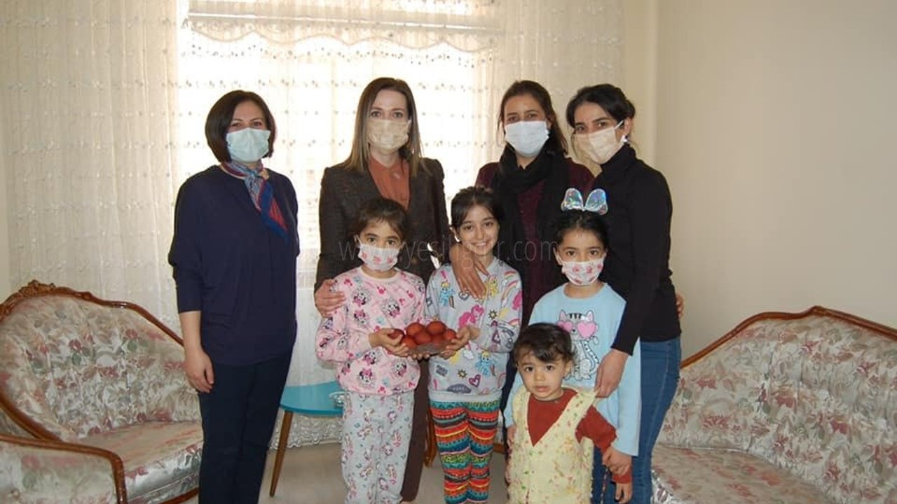 Ailenin çocukları Zeynep, Zehra, Arzu ve Cengizhan, hazırladıkları Nevruz yumurtalarını hanımefendiye hediye ederken, hanımefendi de çocuklara Nevruz Bayramı hediyeleri verdi.