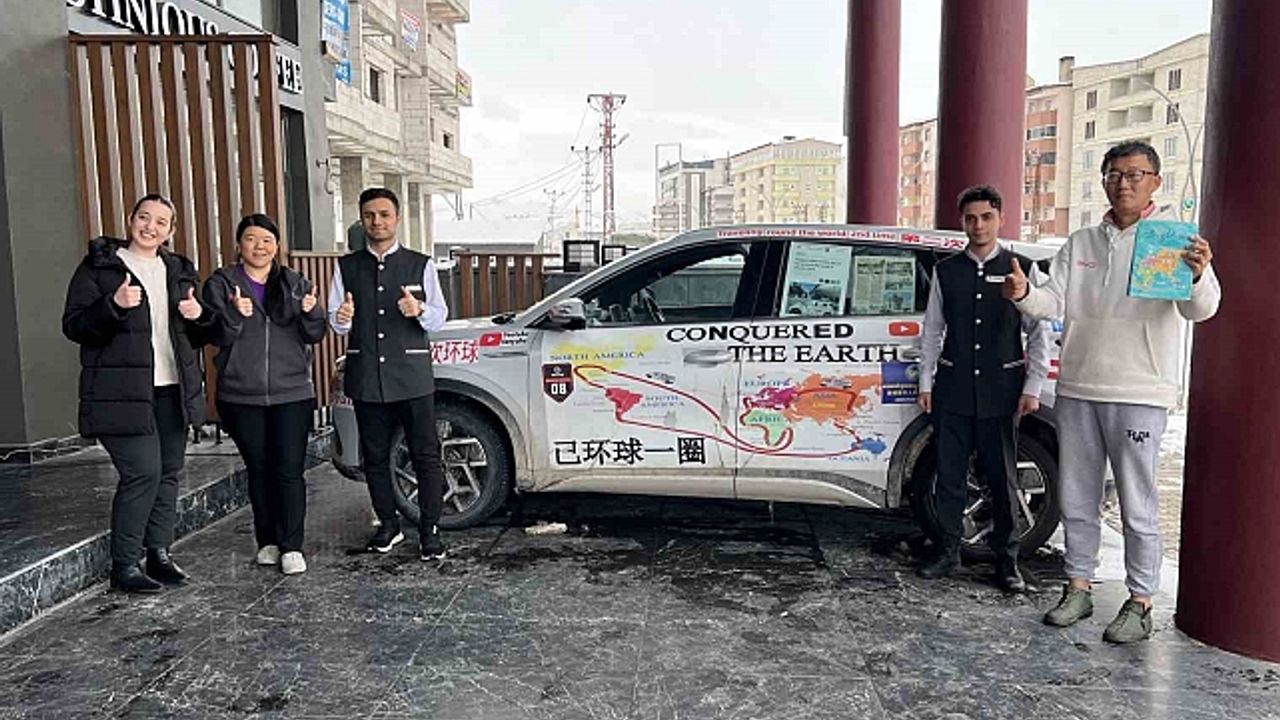 HAKKARİ (İHA) – Elektrikli otomobilleriyle dünya turuna çıkan Çinli çift, Hakkari''nin Yüksekova ilçesine geldi.