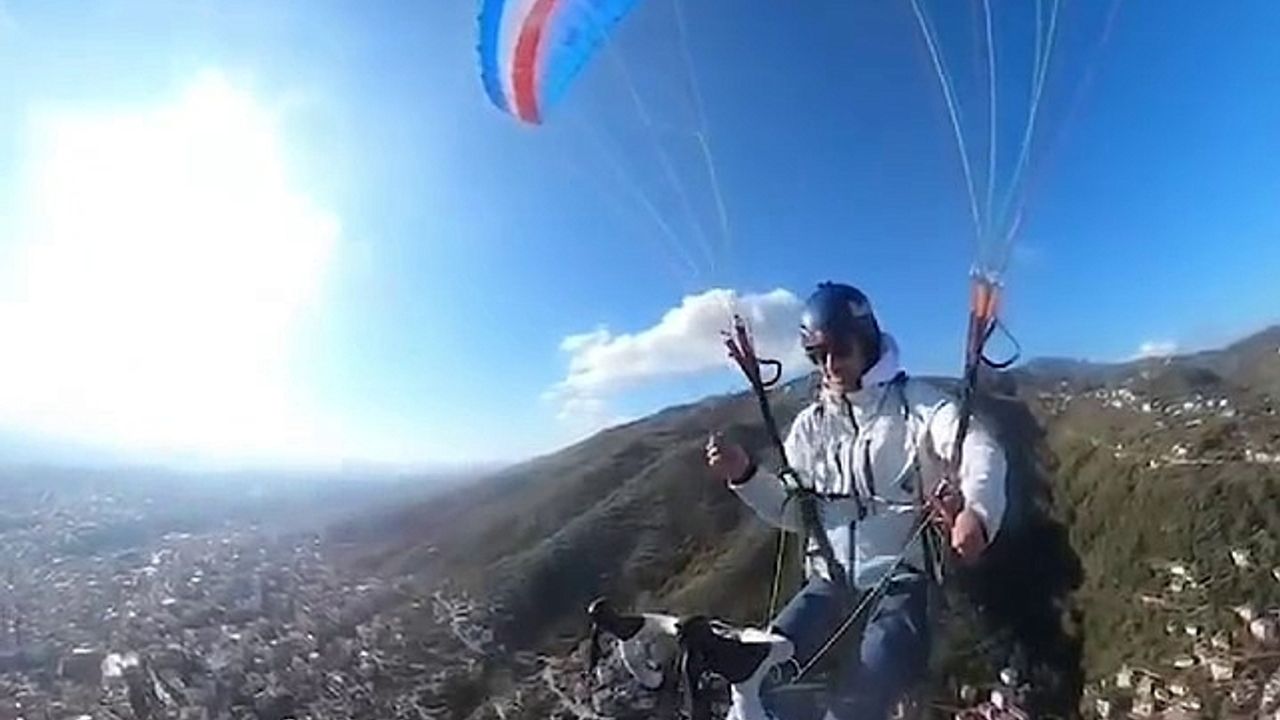 Ordulu yamaç paraşüt sporcusu Durmuş Şahin, havada bisikletiyle pedal çevirdi.