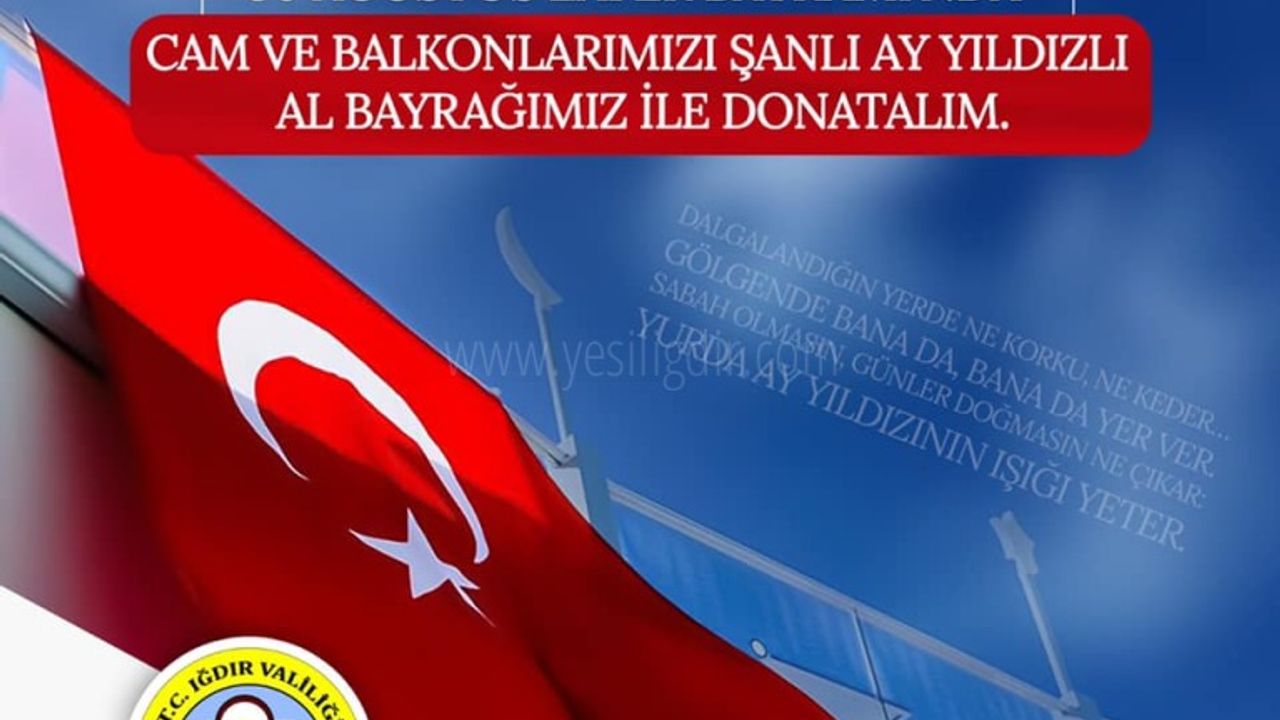 Tarihe altın harflerle yazdırdığımız her bir safhası eşsiz kahramanlık destanı ile dolu 30 Ağustos Zafer Bayramı"nın 98. yıl dönümünde evlerimizin cam ve balkonlarını şanlı ay yıldızlı al bayrağımız ile donatalım, bayram coşkusunu ve gururunu hep birlikte yaşayalım...
