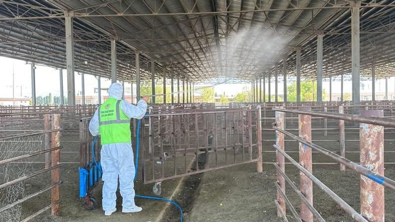 Gerçekleştirilen dezenfeksiyon işlemleriyle birlikte, hayvan pazarlarında hastalık risklerinin en aza indirilmesi hedefleniyor.
