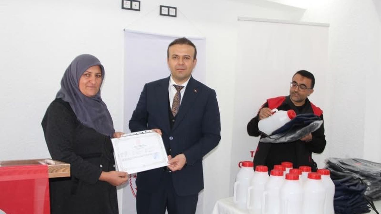 Eğitim programını başarıyla tamamlayan 15 kursiyere Kurs Bitirme Belgeleri, Iğdır İl Tarım ve Orman Müdürü Ahmet Tingiş, Halk Eğitimi Merkezi Müdürü Musa Ölmez ve Koordinasyon ve Tarımsal Veriler Şube Müdürü Hilal Yılmaz tarafından takdim edildi.
