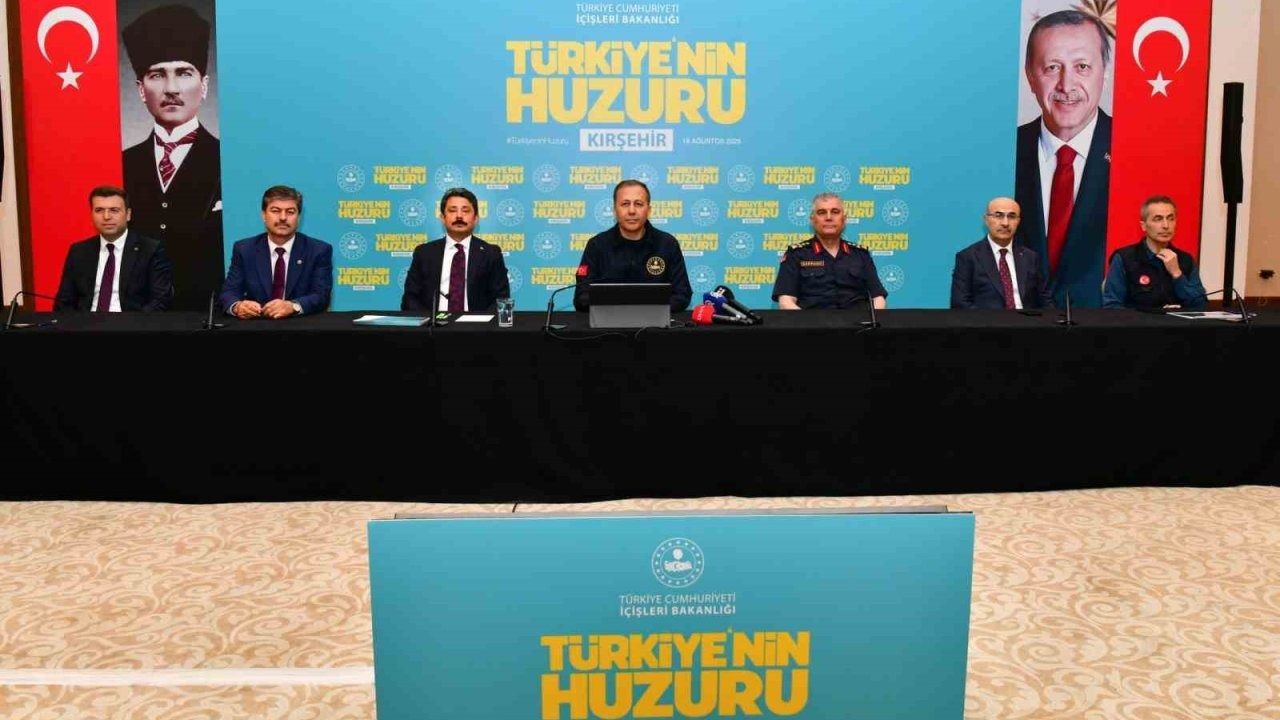 Çeşitli ziyaret ve incelemelerde bulunmak üzere Kırşehir"e gelen Bakan Yerlikaya, ziyaret ettiği Kırşehir Valiliğinde protokol üyeleriyle bir araya geldi. Esnafı da ziyaret eden Bakan Yerlikaya, vatandaşlarla sohbet ederek taleplerini dinledi. Ardından bir otelde düzenlenen "Türkiye"nin Huzuru Toplantısı"na katılan Bakan Yerlikaya, toplantıda Kırşehir"in asayiş durumu ve yürütülen güvenlik çalışmalarının ele alındığını, İçişleri Bakanlığının huzur için mücadeleye devam ettiğini söyledi. Yerlikaya, "Türkiye"nin dört bir yanında iç güvenliği sağlamak, kamu düzenini korumak ve vatandaşların huzur içinde yaşamasını temin etmek amacıyla çalışmalarını kararlılıkla sürdürüyoruz. Bakanlık, sadece ülke içinde değil, sınır ötesinde de organize suç örgütleri ve terör yapılanmalarıyla etkin mücadele yürütüyor" dedi.