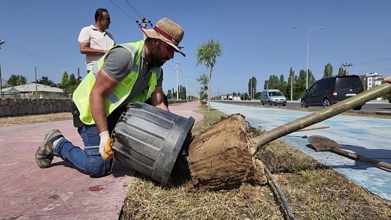 Iğdır Belediyesi Park ve Bahçeler Müdürlüğü tarafından şehrin çeşitli bölgelerinden kuruyan ağaçların yerine yeni ağaçlar dikildi.
