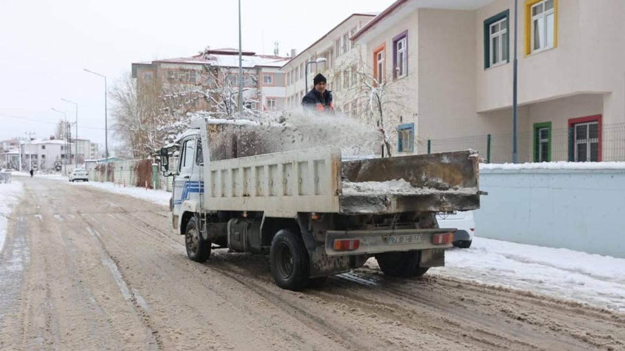 Iğdır Belediyesi Fen İşleri Müdürlüğü ekipleri, kar yağışı nedeniyle şehrin bazı cadde ve sokaklarında oluşan buzlanmaya müdahale ederek yolları tuzladı, biriken karları temizledi.