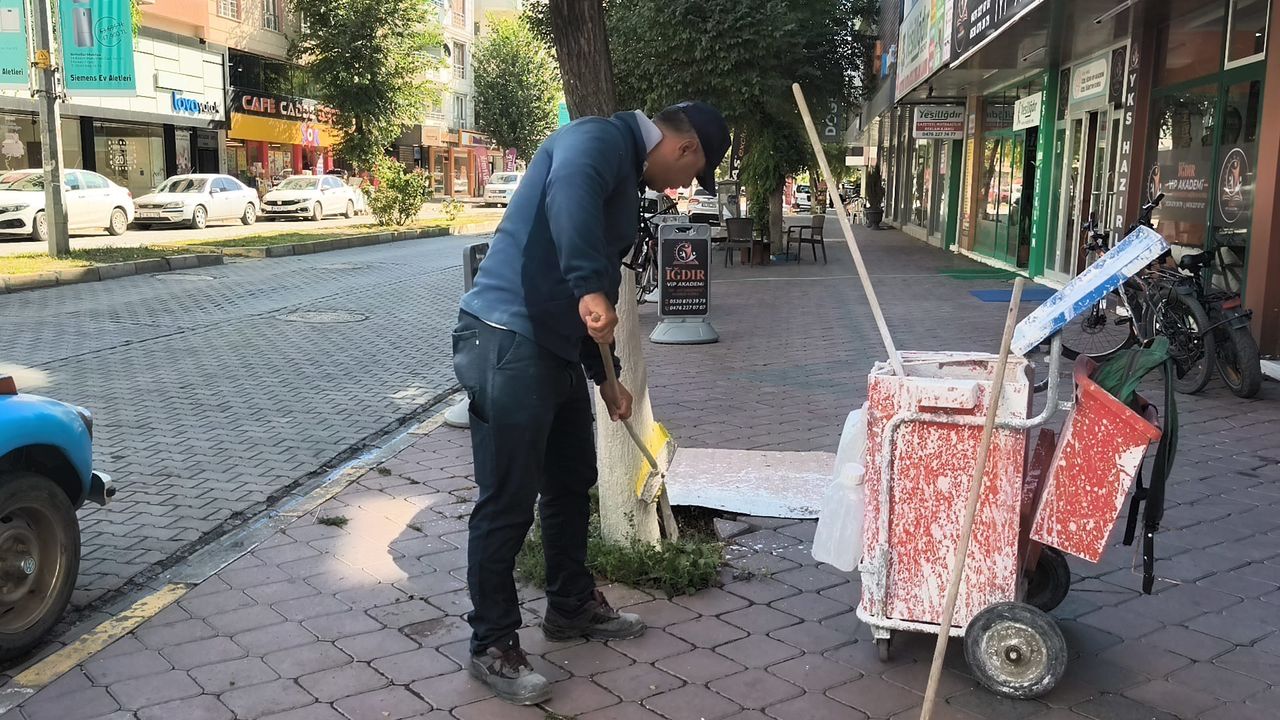 Belediye tarafından yapılan açıklamaya göre, geleneksel ve etkili bir koruma yöntemi olan kireçleme, Vali Konağı yolu üzerindeki ağaçlar da dahil olmak üzere birçok noktada uygulanıyor. Ekipler, ağaç gövdelerini yerden yaklaşık 1-1,5 metre yüksekliğe kadar kireçleyerek bir koruyucu katman oluşturuyor.