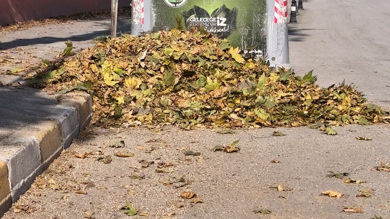 Belediye çalışanları, kuru yaprakları süpürerek çöp konteynırlarına ve yol kenarlarına topluyor. Toplanan bu bitkisel atıklar daha sonra çöp kamyonlarına yüklenerek bertaraf alanına ulaştırılıyor.