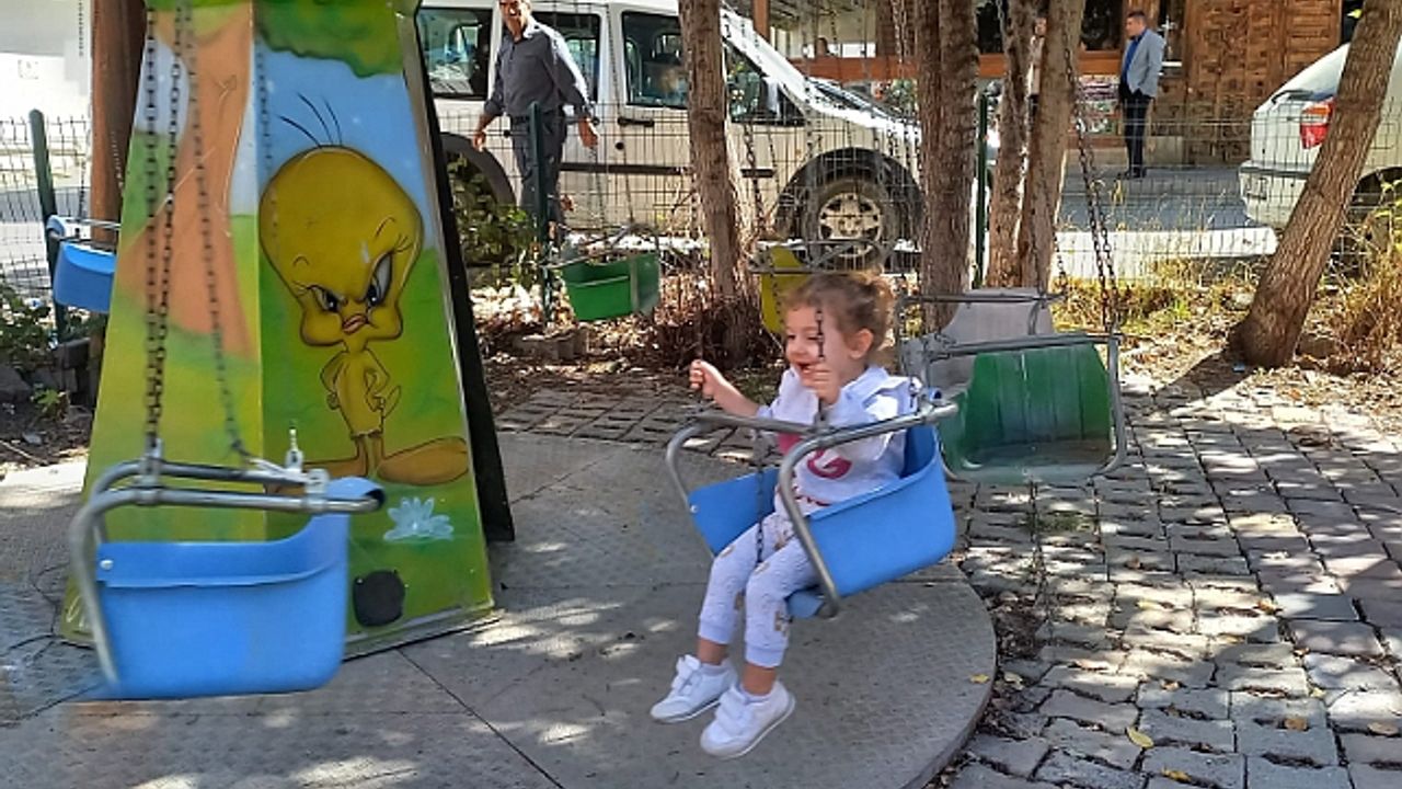 Hava sıcaklığının yaklaşık 12 dereceyi bulduğu il genelinde parkları dolduran çocuklar, kış günü keyifli zaman geçirdi.