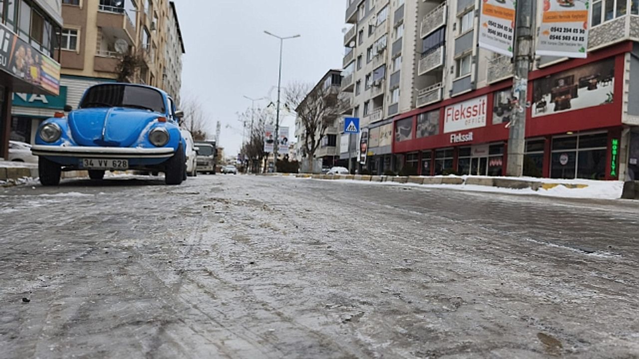 Iğdır''da kar yağışının ardından meydana gelen buzlanma, şehir içinde yolların adeta buz pistine dönmesine neden oldu.