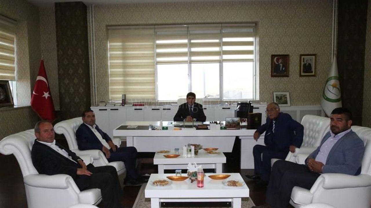 Damızlık Sığır Yetiştiricileri Birliği Başkanı Öztürk Kaylan, yönetim kurulu üyeleri ile birlikte Iğdır Üniversitesi Rektörü Prof. Dr. Mehmet Hakkı Alma"yı makamında ziyaret ederek Rektör Alma"ya yeni görevinde başarılar dilediler.