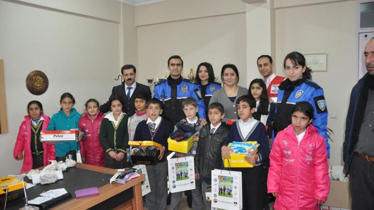Yardım malzemelerinin dağıtımına eğitim gönüllüsü Seher Karğı, Iğdır Toplum Destekli Şube Müdürü Mustafa Gökhan Solak, yardımcısı Özlem Işık katılarak öğrencilere dağıttılar. Öğrenciler de polislere teşekkür ettiler.