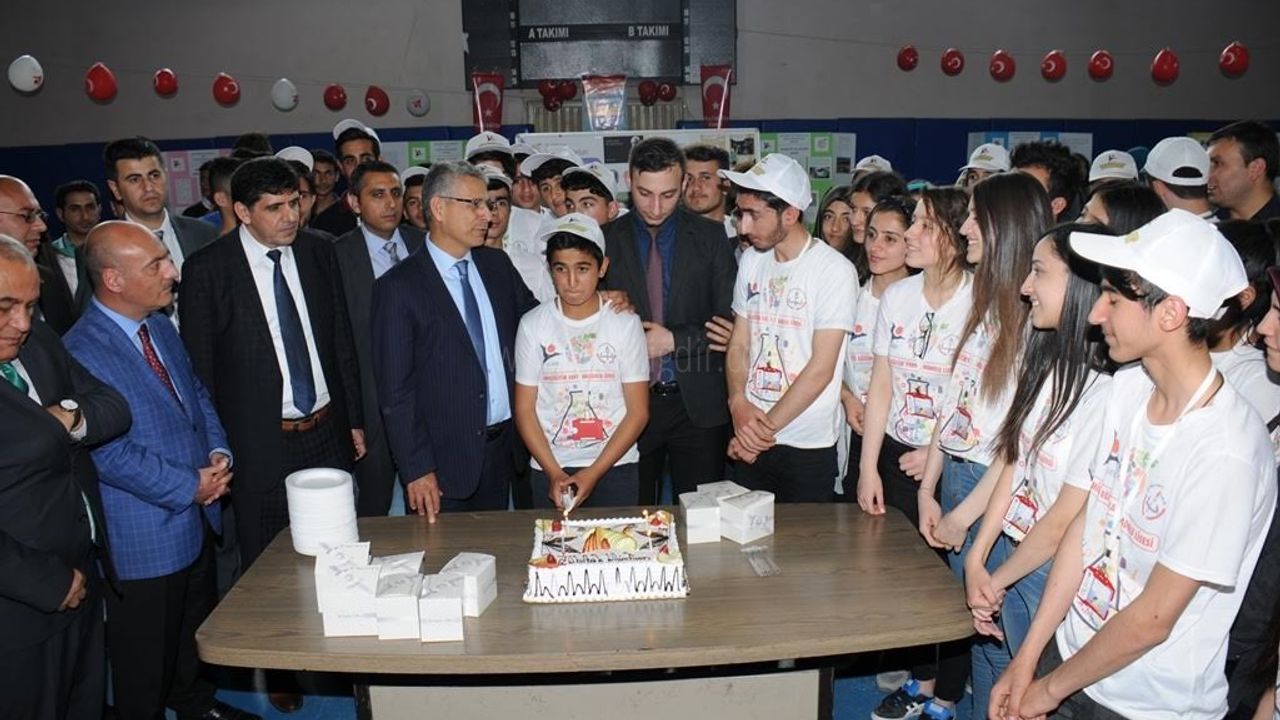 Okulun Kapalı Spor Salonu"nda gerçekleşen Bilim Fuarı"nın açılışını Vali Alpman ile Rektör Prof. Dr. Alma birlikte yaptı. Bilim Fuarını gezen Vali Aplman ve Rektör Alma hazırlanan projelerle ilgili öğrencilerden bilgi aldılar.
