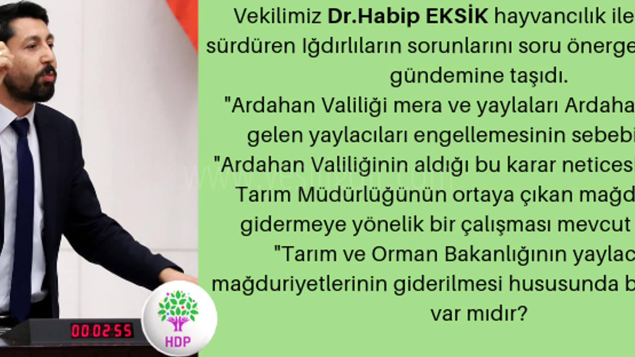 6- Ardahan valiliği böyle ani bir karar vererek yaylaların hayvancılıkla geçimini sağlayan Iğdır gibi diğer illerde yaşayan vatandaşların Ardahan ili meralarından yararlanılmasına izin vermemesi durumu nedeniyle ortaya çıkan ve çıkacak mağduriyetlerin giderilmesine yönelik bir çalışmanız var mıdır, olacak mıdır? Ardahan Valiliğinin aldığı bu karar neticesinde Iğdırlı vatandaşlarımızın mağduriyetlerinin giderilmesi hususunda Iğdır İl Tarım Müdürlüğünün mağduriyetlerin giderilmesi hususunda almış olduğu bir tedbir var mıdır?