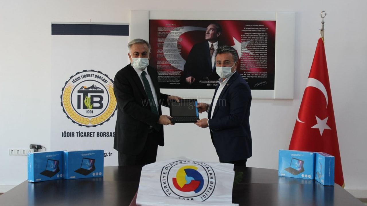 Türkiye Odalar ve Borsalar Birliği (TOBB) ve Iğdır Ticaret Borsasının katkılarıyla temin edilen Eğitim Bilişim Ağı (EBA) uyumlu 55 tablet, Iğdır Ticaret Borsası Yönetim Kurulu Başkanı Serhat Kumtepe tarafından, İl Milli Eğitim Müdürü Hakan Gönen''e imzalanan protokol ile takdim edildi.