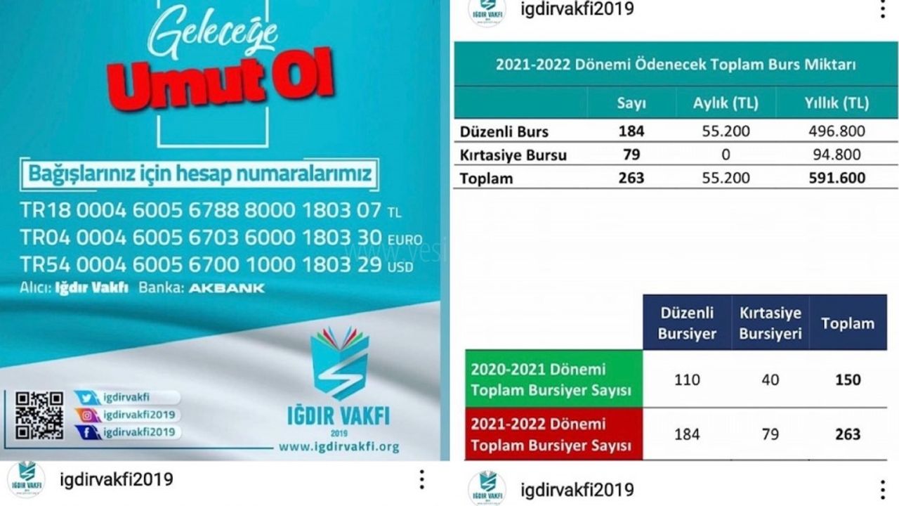 Hayırsever insanlarımızın güven duyarak yaptıkları bağışlar ile Iğdırlı öğrencilerimize burs imkanı sağlayan Iğdır Vakfı"nı gönülden kutluyoruz.