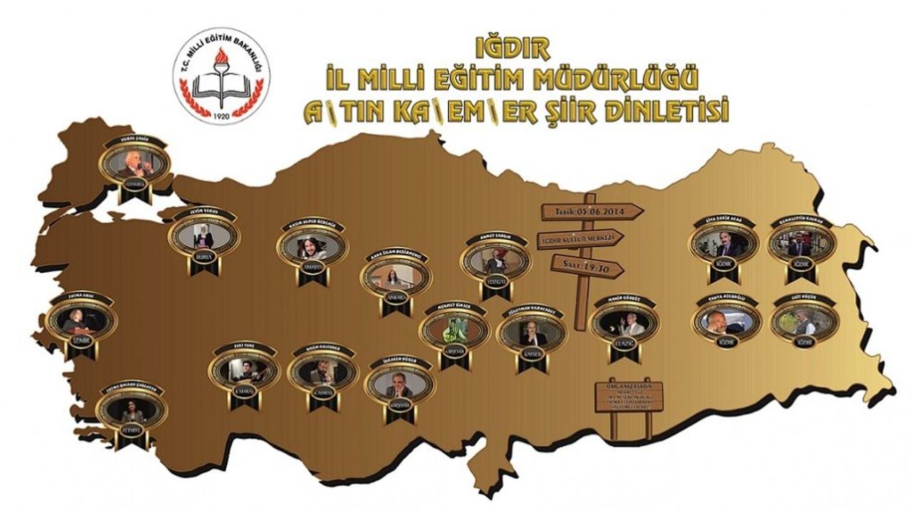 Altın Kalemler Şiir Dinletisi için Doğunun İncisi olarak bilinen Yeşil Iğdır"a Türkiye"nin çeşitli illerinden Şair-yazar-ozan ve bestekârlar geleceği, dinletiye gelen misafirler 4 Haziran tarihinde Iğdır il ve ilçelerine düzenlenen gezi ile şehir tanıtımı yapılacağı ve 5 haziran akşamı saat 19.30"da Iğdır Kültür Merkezi"nde yapılacak şiir dinletisiyle programın sonlanacağı açıklandı.