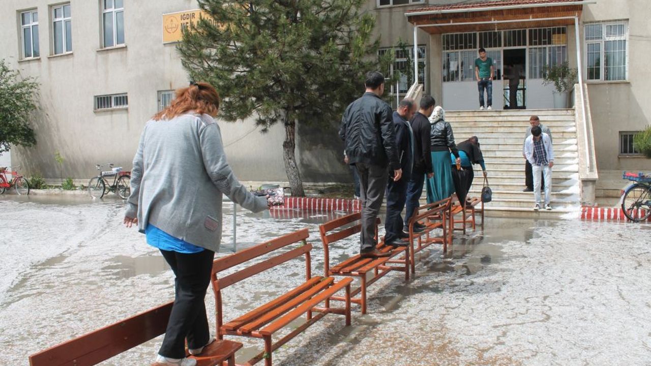 Iğdır''da etkili olan dolu nedeniyle ekili alanlar hasar görürken, bazı iş yerleri de sular altında kaldı. Dün Saat 14''de aniden başlayan ve 20 dakika süren dolu yağışı Hayatı olumsuz etkiledi.Öğlen Aralıklarla etkili olan yağmur,Öğlenden sonradoluya dönüştü. Yaklaşık 20 dakika yağan dolu,Merkeze bağlı köylerde ekili alanlarda ve meyve bahçelerinde hasara yol açtı. Buğday tarlalarında sapların yere serildiğini, kayısı bahçelerinde de kaysıların yere döküldüğünü belirten vatandaşlar, “Önce sağanak, ardından da dolu yağışı etkili oldu. Yaklaşık 20 dakika kadar yağan dolu nedeniyle ciddi zarar gördük. Ekili alanlar önemli ölçüde zarar gördü” dedi. İl merkezinde de çok sayıda dükkan ve Sanayi Sitesi''ndeki bazı iş yerleri, sağanak ve dolu nedeniyle sular altında kaldı.Vatandaşalar yolda yürüyemez hale geldi açık lise sınavına girecekler okul bahçesi sular altında kaldığı için okulun içine bankların üstüne çıkarak girmek zorunda kaldılar.