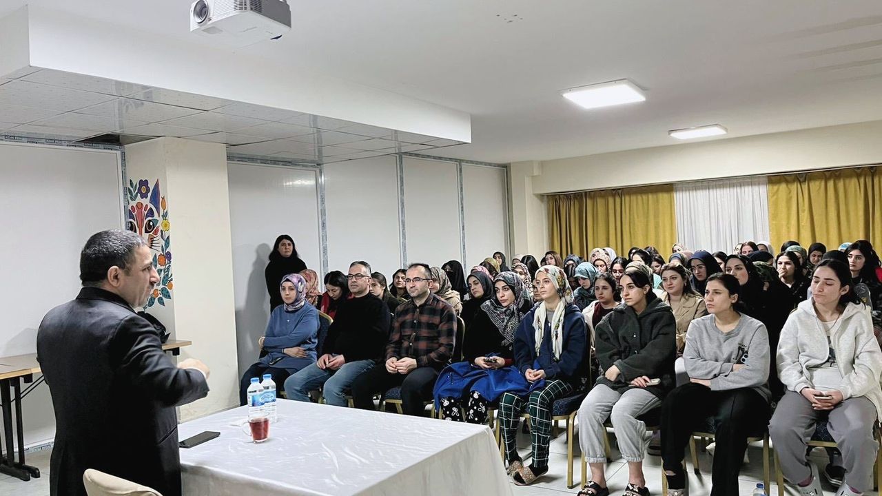Iğdır’da yükseköğrenim gören öğrencilerin akademik gelişimlerinin yanı sıra manevi dünyalarına katkı sunmak amacıyla düzenlenen etkinlikler devam ediyor. Ramazan ayı dolayısıyla Süreyya Sülün Hanım Yurdu’nda gerçekleştirilen “Kulluk Bilinci” konulu seminer, öğrencilerden yoğun ilgi gördü.