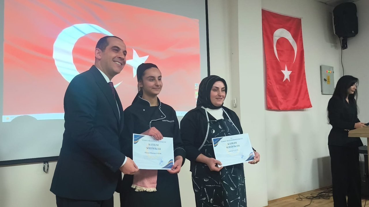 Okul müdür yardımcısı Naciye Parlar’da” Turizm Mesleki Teknik Anadolu Lisesi olarak genel anlamda hem Turizm Haftası'na ithafen hem de yiyecek içecek hizmetleri alan öğrencilerimizin başarılarını ortaya koymalarını, özgüvenlerini sağlamak için özellikle bu yılın da aile yılı olması münasebetiyle anne-kız olarak iki nesil bir lezzet yemek yarışması düzenlemiş bulunuyoruz. Şu anda yöremiz yemeklerinden olan Taşköyde, Katıkaşı ve Kaysafa tatlısı yapılarak yarışmayı düzenledik şeklinde konuştu.