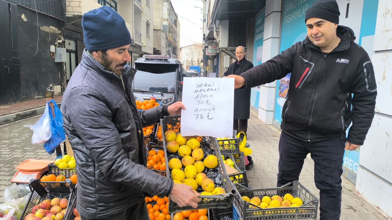 İl Sağlık Müdürlüğü karşısında tezgahından yerli ürün satan Sebzeci Alasker, “Elma ve armutlar yerli ürün. Piyasada 100–120 lira civarında satılıyor. Ben daha ucuz veriyorum ki vatandaş Ramazan’da meyve yiyebilsin,” dedi.