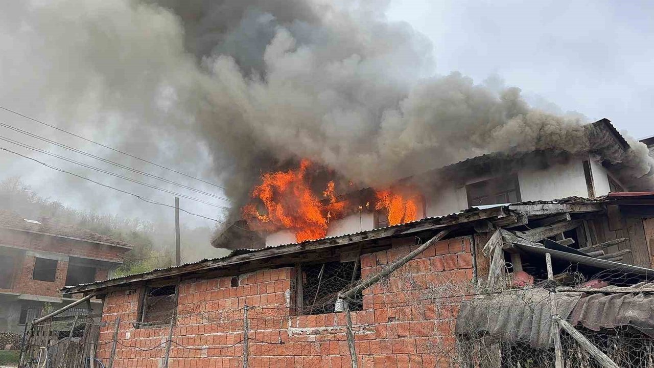 Kastamonu'nun Hanönü ilçesinde çıkan yangında iki katlı ev kullanılmaz hale geldi.