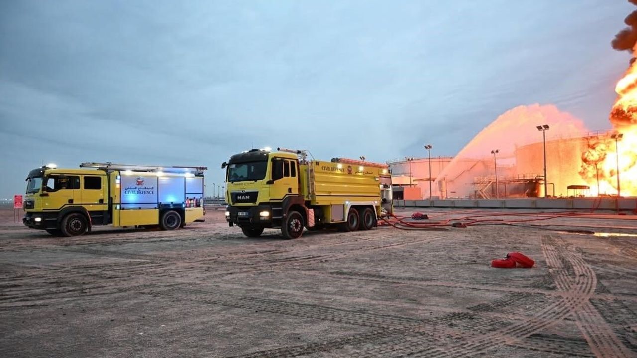 İran ordusunun Bahreyn'deki bir tesiste bulunan yakıt tanklarını hedef alması sonucu yangın çıktı.