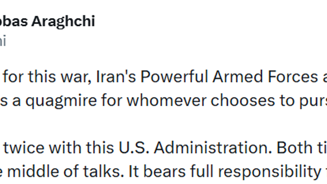 İran Dışişleri Bakanı Abbas Arakçi, mevcut ABD yönetimi ile iki kez müzakere ettiklerini ancak her iki seferde de görüşmelerin ortasında saldırıya uğradıklarını belirterek, 'Akan kanın tüm sorumluluğu onlara aittir' dedi.