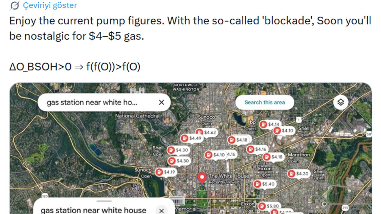 ABD'nin İran limanlarına giriş ve çıkışları kapsayan deniz trafiğine yönelik abluka kararına İran cephesinden tepki geldi. İran Meclis Başkanı Muhammed Bakır Galibaf, sosyal medya hesabından yaptığı paylaşımda, ABD'nin kararının benzin fiyatlarında daha fazla artışa yol açacağına dikkat çekerek, 'Şu an pompaya yansıyan benzin fiyatlarının tadını çıkarın. Sözde 'abluka' ile birlikte, yakında 4-5 dolarlık benzini özleyeceksiniz' dedi. Galibaf, farklı benzin istasyonlarındaki fiyatları gösteren bir uygulamada yaptığı 'Beyaz Saray'a yakın benzin istasyonu' aramasının ekran görüntüsünü paylaştı.