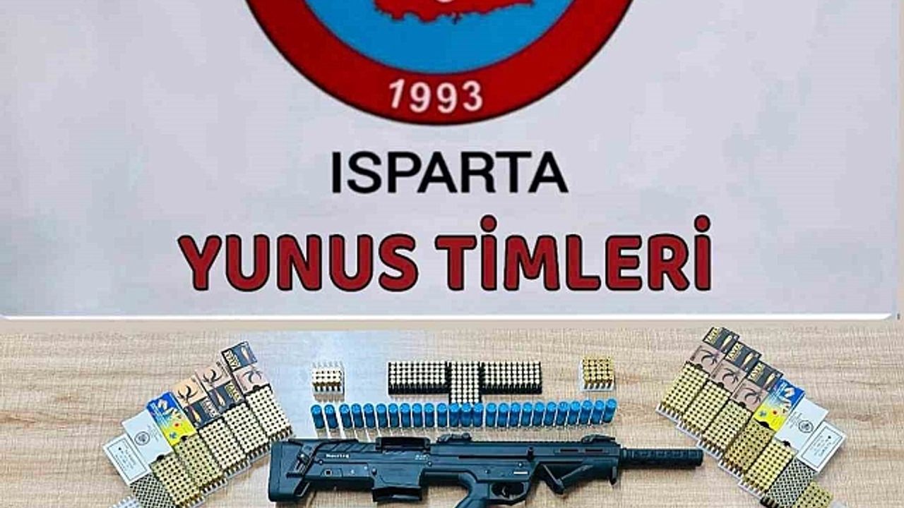Isparta''da Asayiş Şube Müdürlüğü ekiplerinin bir şahsın evine düzenlediği operasyonda; 1 ruhsatsız tabanca, 1 ruhsatsız otomatik tüfek, bin 236 tabanca mermisi, 25 kartuş ve 4 şarjör ele geçirildi.